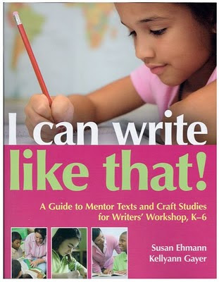 If you're here at this site, you're most likely interested in teaching with picture books. You recognize that these models provide excellent exemplars for word choice, idea development, story structure, and many other skills and traits. In fact, You know the importance of using mentor texts when teaching author's craft to your young writers. But how do you- a busy teacher with only so many hours in a day - find great mentor texts?  That challenge is met in I Can Write Like That! A Guide to Mentor Texts and Craft Studies for Writers' Workshop, K-6, an International Reading Association title by Susan Ehmann and Kellyann Gayer.
